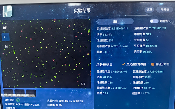 實(shí)驗(yàn)結(jié)果也印證了這一點(diǎn):儀器制備的懸液濁度僅 0.89.細(xì)胞平均直徑 10.52μm(符合皮膚細(xì)胞正常范圍),后續(xù)做流式檢測時(shí),雜質(zhì)干擾信號(hào)比手動(dòng)法低了 18%。