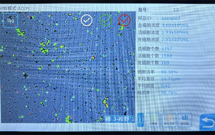 總細(xì)胞濃度3.02×10?/mL,活細(xì)胞濃度 2.73×10?/mL(活細(xì)胞占比超 9 成)